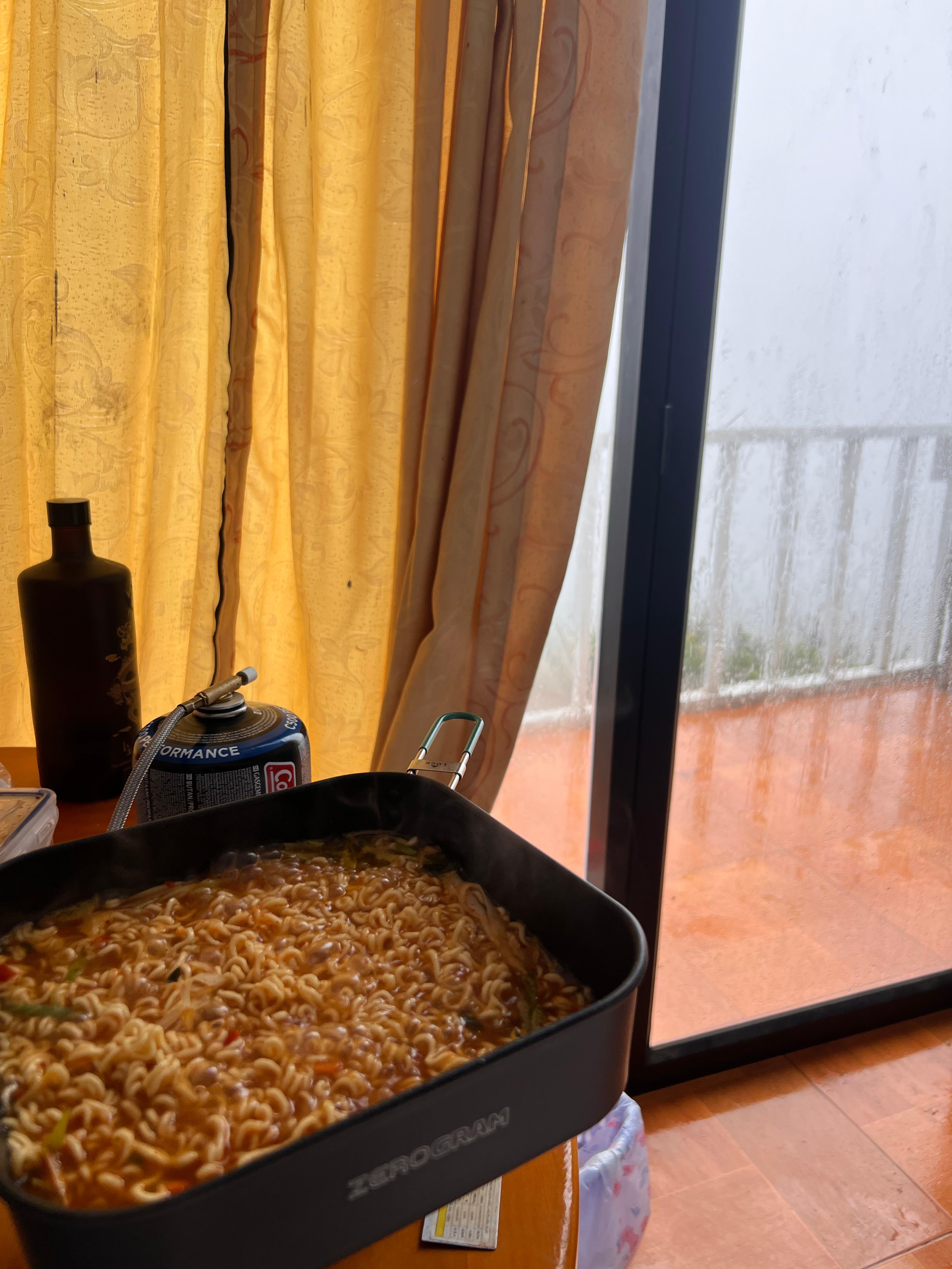계속 비소리에 일어나서 밖에서도 버너켜기 힘들어서 실내에서 조심히 라면과 가져온 술을 홀짝 홀짝 마시다보니