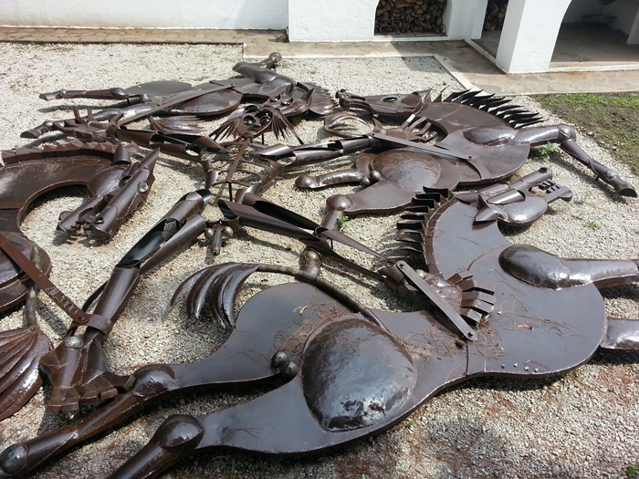 바닥에 커다란 말 조각들이 펼쳐져있다.