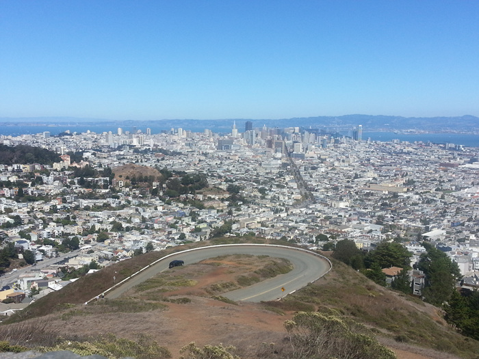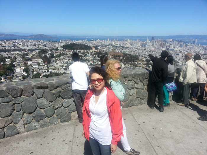 점심먹고 시내를 거쳐서 트윈픽스(쌍둥이 봉우리)에 올라와 샌프란시스코 시내 전경을 보았다.
